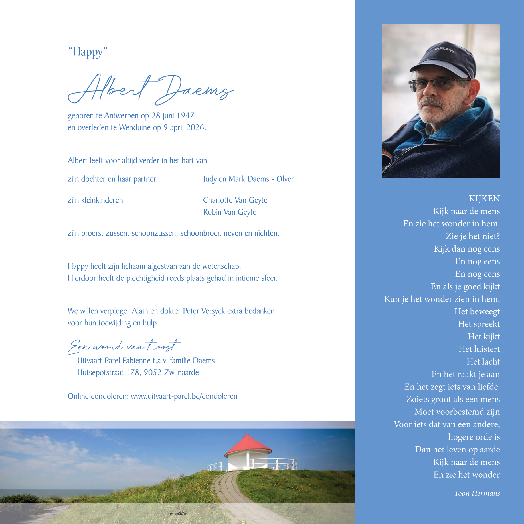 Overleden te Wenduine (8420) op donderdag 9 april 2026 op 78-jarige leeftijd