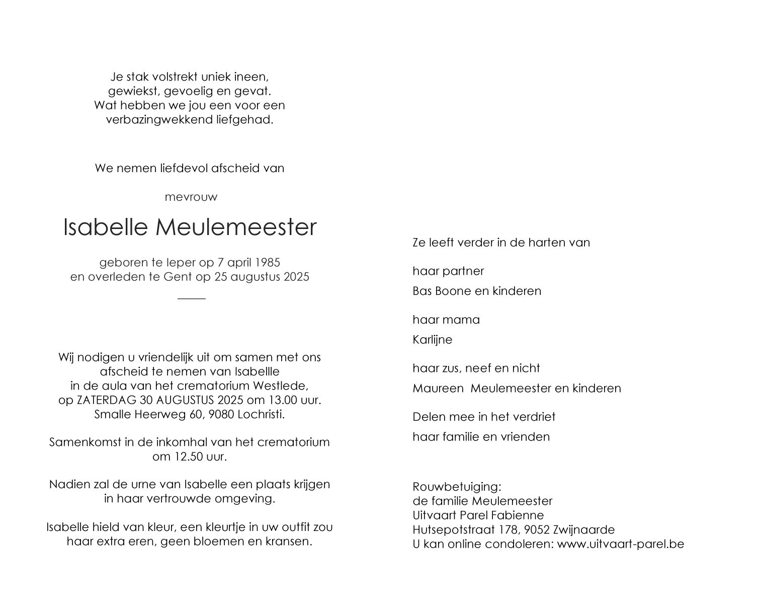 Overleden te Gent (9000) op maandag 25 augustus 2025 op 40-jarige leeftijd