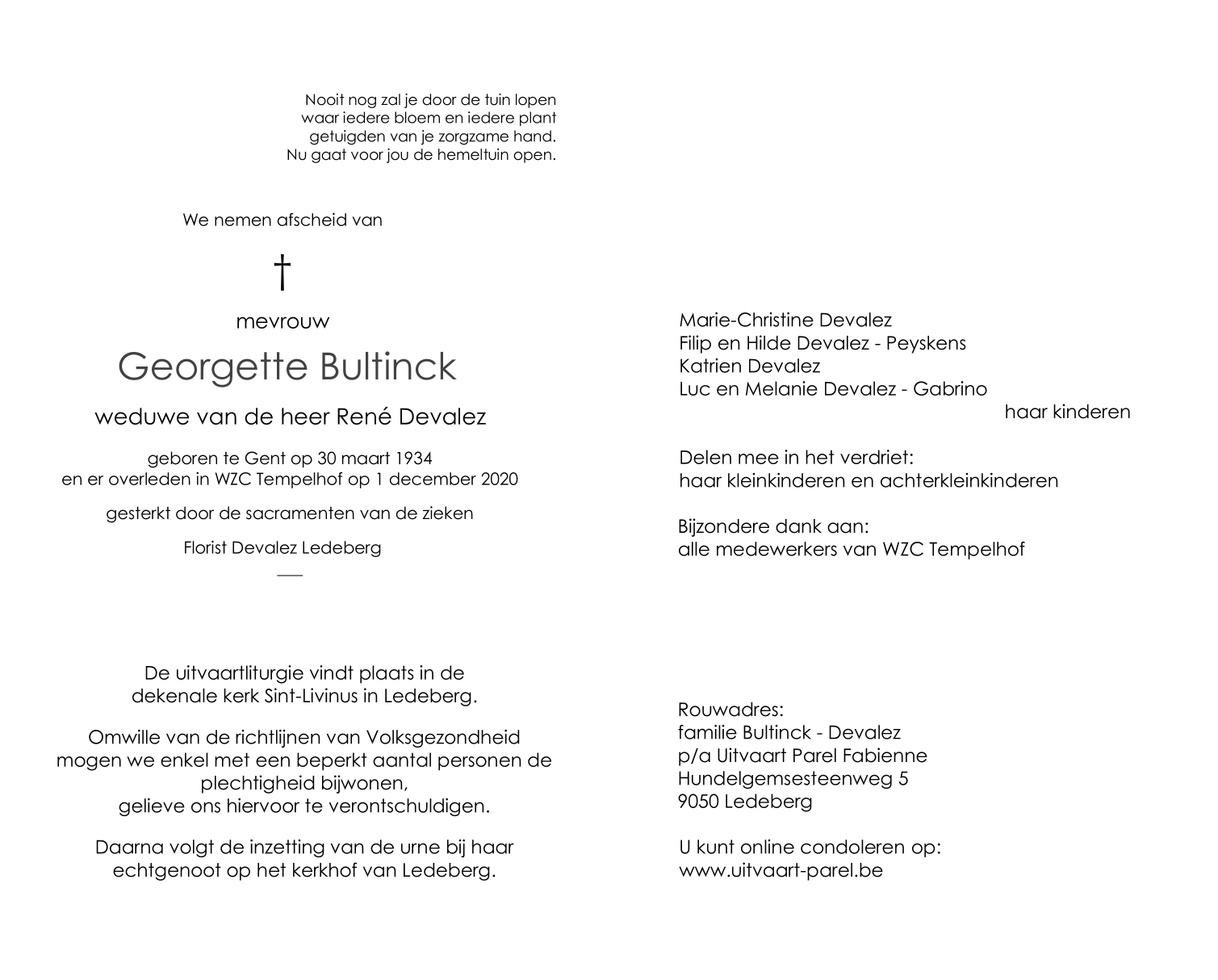 Overleden te Gent (9000) op dinsdag 1 december 2020 op 86-jarige leeftijd