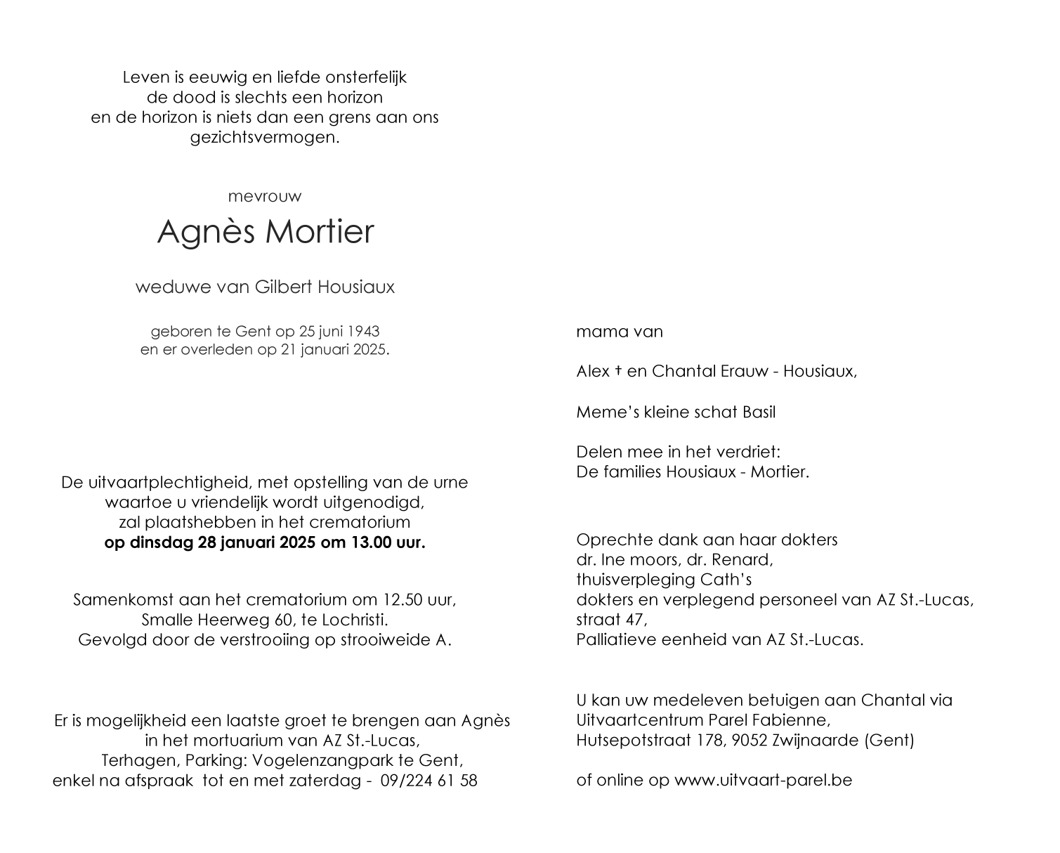 Overleden te Gent (9000) op dinsdag 21 januari 2025 op 81-jarige leeftijd