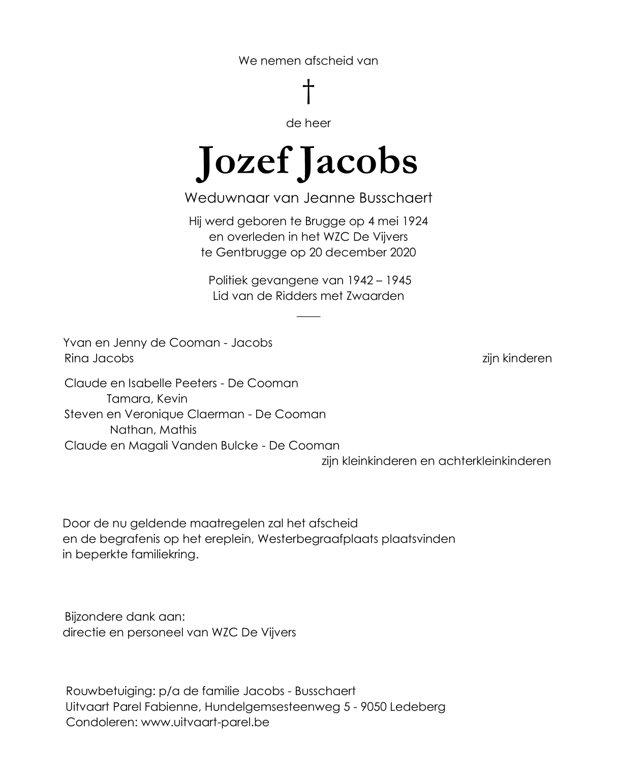 Weduwnaar van Mevrouw Jeanne Busschaert
